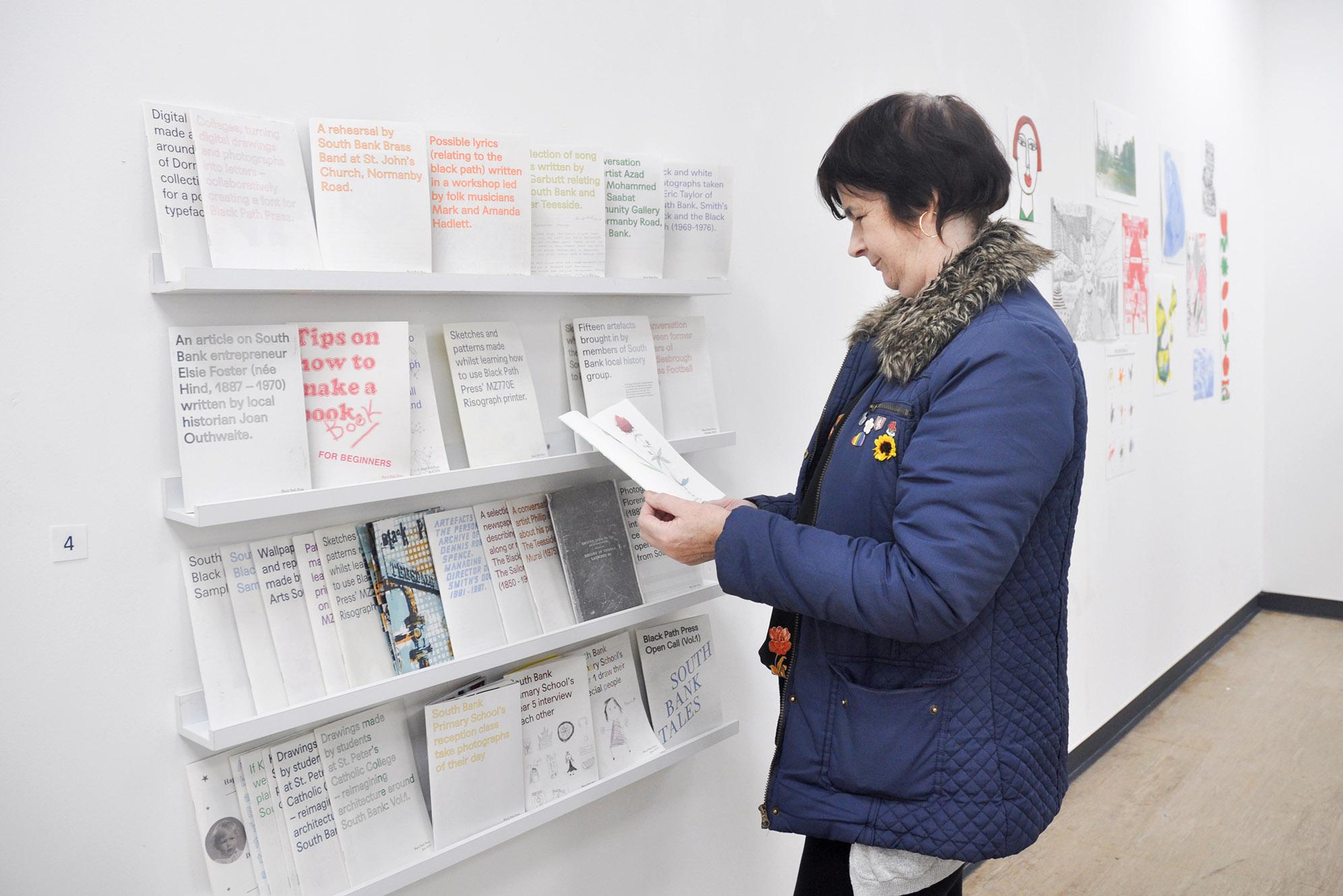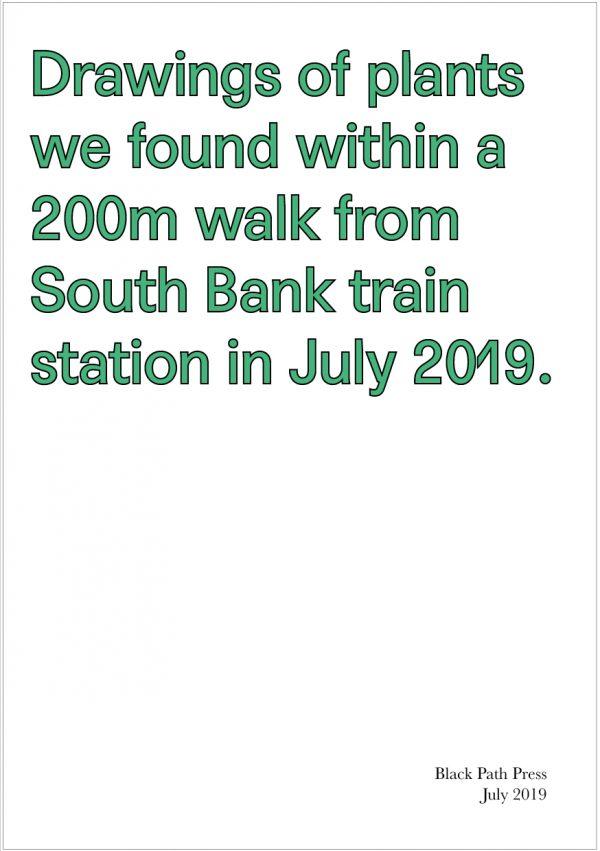 Books made in 2019 include: • Digital drawings made after a walk around the site of Dorman Long, collecting shapes for a possible typeface. • Collages, turning digital drawings and photographs into letters – collaboratively creating a font for Black Path Press • A conversation with artist Philip Boville about his painting – The Teesside Mural (1975) • Black and white photographs taken by Eric Taylor of South Bank, Smith's Dock and the Black Path (1969-1976) • An introduction to Black Path Press' MZ770E Risograph printer – a tool for making small books, prints and posters • A selection of newspaper articles describing events along or near The Black Path / The Sailor's Trod (1850-1911) • South Bank & The Black Path, Pattern Sampler: Vol 1 / Vol 2 • If Kidz Konnekt Youth Club were town planners for South Bank... • A selection of song lyrics written by Vin Garbutt relating to South Bank and wider Teesside • A conversation with artist Azad Karim Mohammed about Saabat Community Gallery on Normanby Road, South Bank • Edgelands: A screenprinted book by artist Julie Macbean • Kidz Konnekt Youth Club South Bank photograph each other's talents • Fifteen artefacts brought in by members of South Bank local history group • South Bank in Bloom plant geraniums along Normanby Road • Sketches made whilst walking the black path from South Bank station to Redcar sea front • Drawings made by students at St.Peter's Catholic College – reimagining architecture around South Bank Vol 1/Vol 2 • South Bank Primary School's Year 5 interview each other • South Bank Primary School's Year 1 draw their special people • South Bank Primary School's reception class take photographs of their day • Possible lyrics (relating to the black path) written in a workshop led by folk musicians Mark and Amanda Hadlett • An article on South Bank entrepreneur Elsie Foster (née Hind, 1887-1970) written by local historian Joan Outhwaite • Artefacts from the personal archive of Dennis Roger Spence, Managing Director of Smith's Dock (1981 -1987) • Open Call Vol.1: 'South Bank Tales' • Smith's Dock: A Ledger of Ships (1905-1987) • A rehearsal by South Bank Brass Band at St. John's Church, Normanby Road • Drawings of plants we found within a 200m walk from South Bank train station in July 2019 • Photographs of Soprano Singer Florence Easton – also known as the 'South Bank Nightingale' • Documentation of artwork for South Bank railway station made by Health & Art South Bank • A conversation with players from Middlesbrough Ladies Football Team • Memories of South Bank's 'Golden Boy', footballer Wilf Mannion (1918-2000)