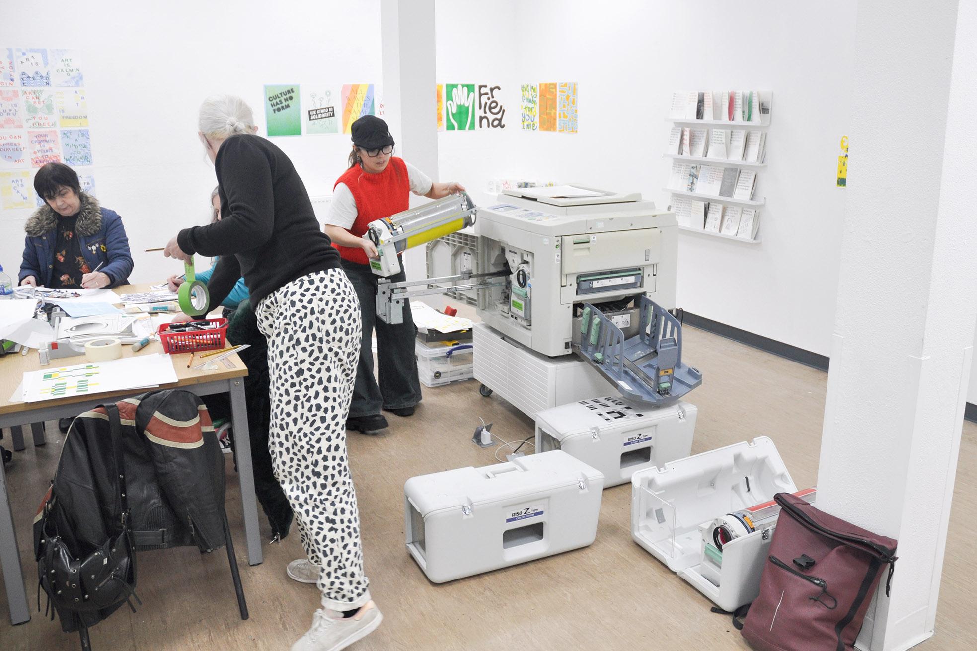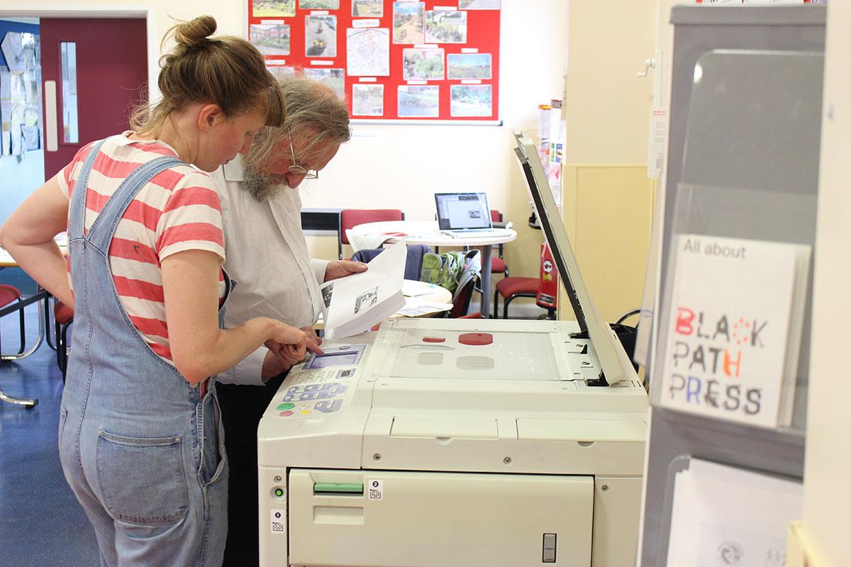 We set up the press in order to develop the public art commission, NOTES ON THE BLACK PATH, making books with many different people. Exploring the black path and the neighbouring community of South Bank through different perspectives and voices.