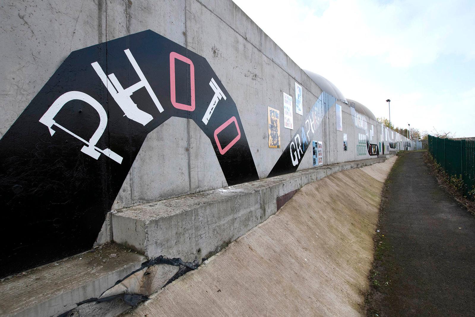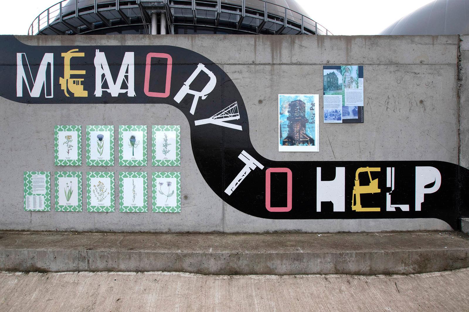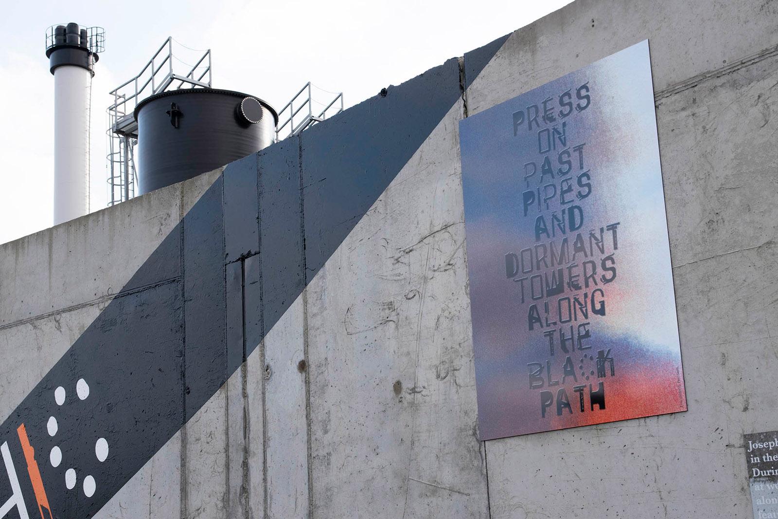 Notes On The Black Path is a public artwork made by Foundation Press with people in South Bank, Middlesbrough; an area surrounding the historical route known as the ‘Black Path’. The artwork features nearly 50 poster designs placed around a lyric by the South Bank-born songwriter Vin Garbutt. The lyric taken from the song 'Photographic Memory' reads: SO TAKE A LOOK NOW USE YOUR PHOTOGRAPHIC MEMORY TO HELP YOU TO DEVELOP YOUR TOMORROWS'. Content for the mural was collected via Black Path Press – a community press created especially for the project and based in Golden Boy Green Community Centre, South Bank.