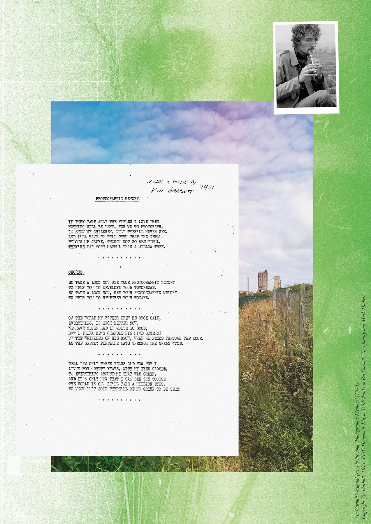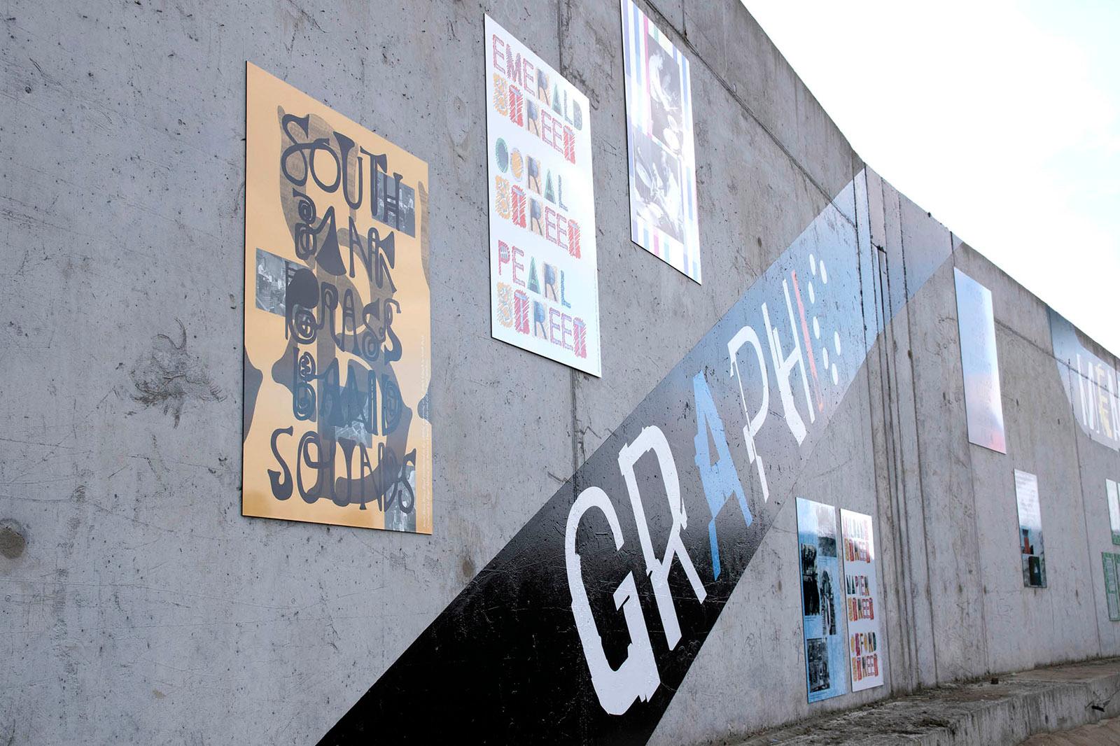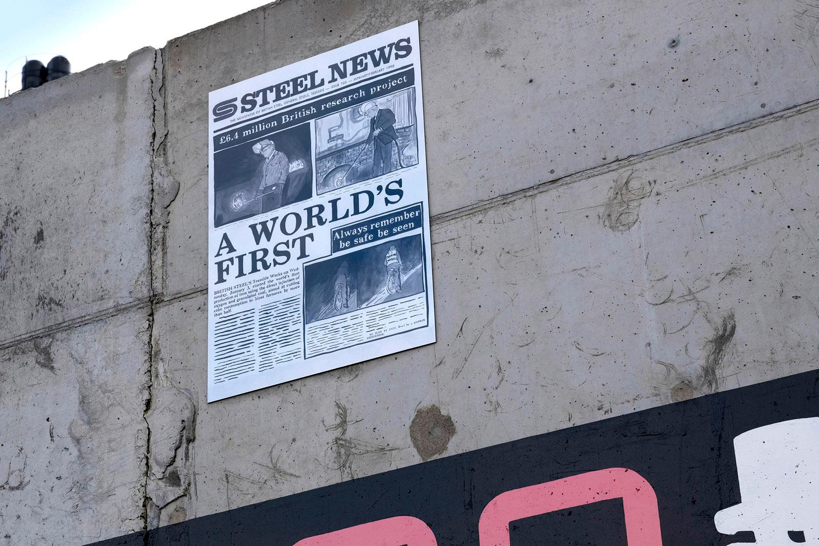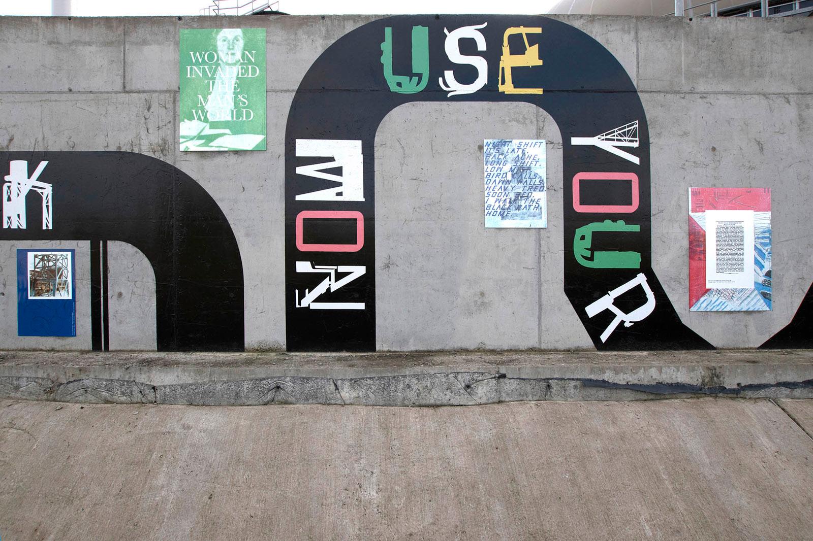 Notes On The Black Path is a public artwork made by Foundation Press with people in South Bank, Middlesbrough; an area surrounding the historical route known as the ‘Black Path’. The artwork features nearly 50 poster designs placed around a lyric by the South Bank-born songwriter Vin Garbutt. The lyric taken from the song 'Photographic Memory' reads: SO TAKE A LOOK NOW USE YOUR PHOTOGRAPHIC MEMORY TO HELP YOU TO DEVELOP YOUR TOMORROWS'. Content for the mural was collected via Black Path Press – a community press created especially for the project and based in Golden Boy Green Community Centre, South Bank.