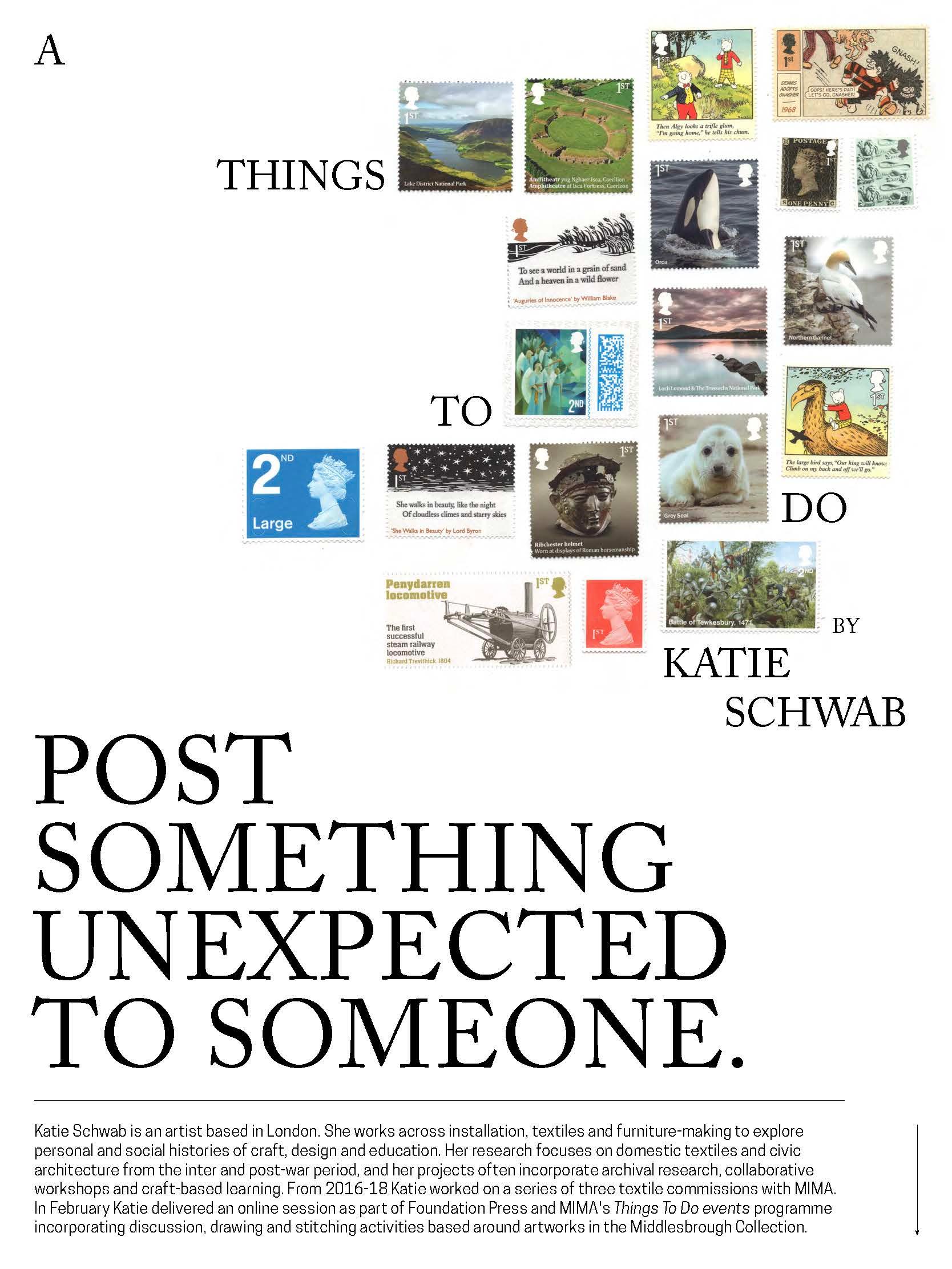 In 2022 we worked with MIMA to present a series of Things To Do's from guest artists. As part of this process we curated a number of online workshop events led by Ciara Phillips, Katie Schwab, Kate Owens and Temporary Services.