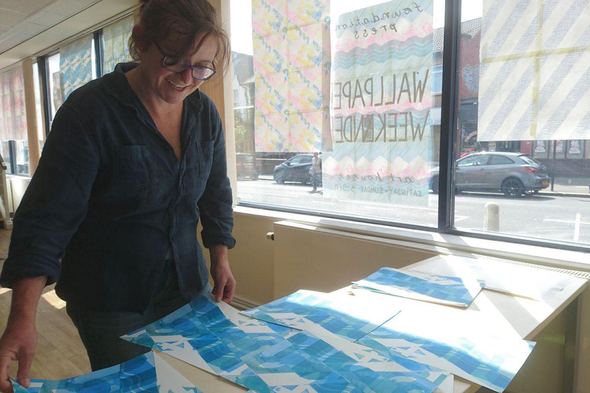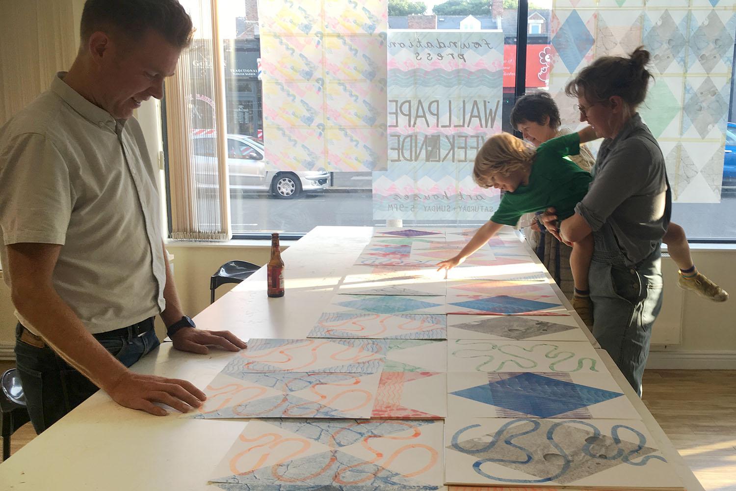 The first two days of Wallpaper Weekender were public workshops making designs with local residents. On the final day we made a tiled wallpaper design entitled Victoria Avenue. Copies were given to co-workers and visitors, in the hope that the designs find homes in more domestic settings.