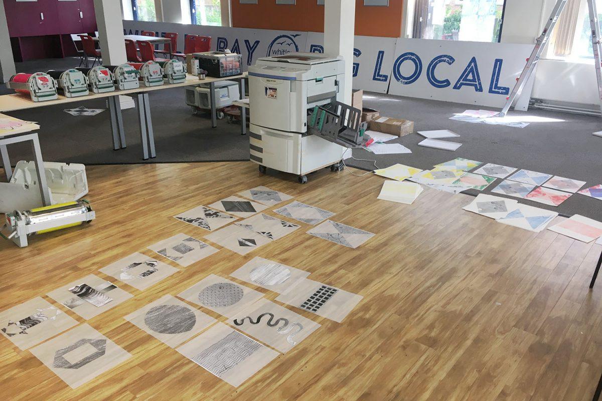 Working from a temporary studio set up in The Big Local (at the former job centre) – the windows of the building gradually filled up with a changing display of prototype risograph-printed patterns.